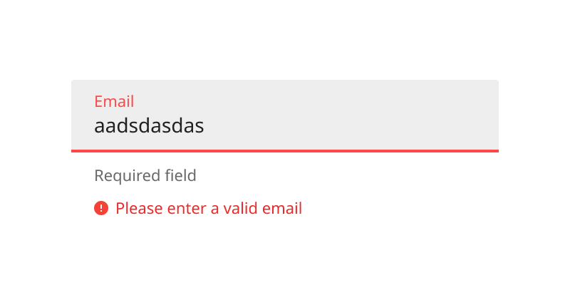 Error text appears when there is an error detected with the user's input. Error text should replace helper text where applicable.